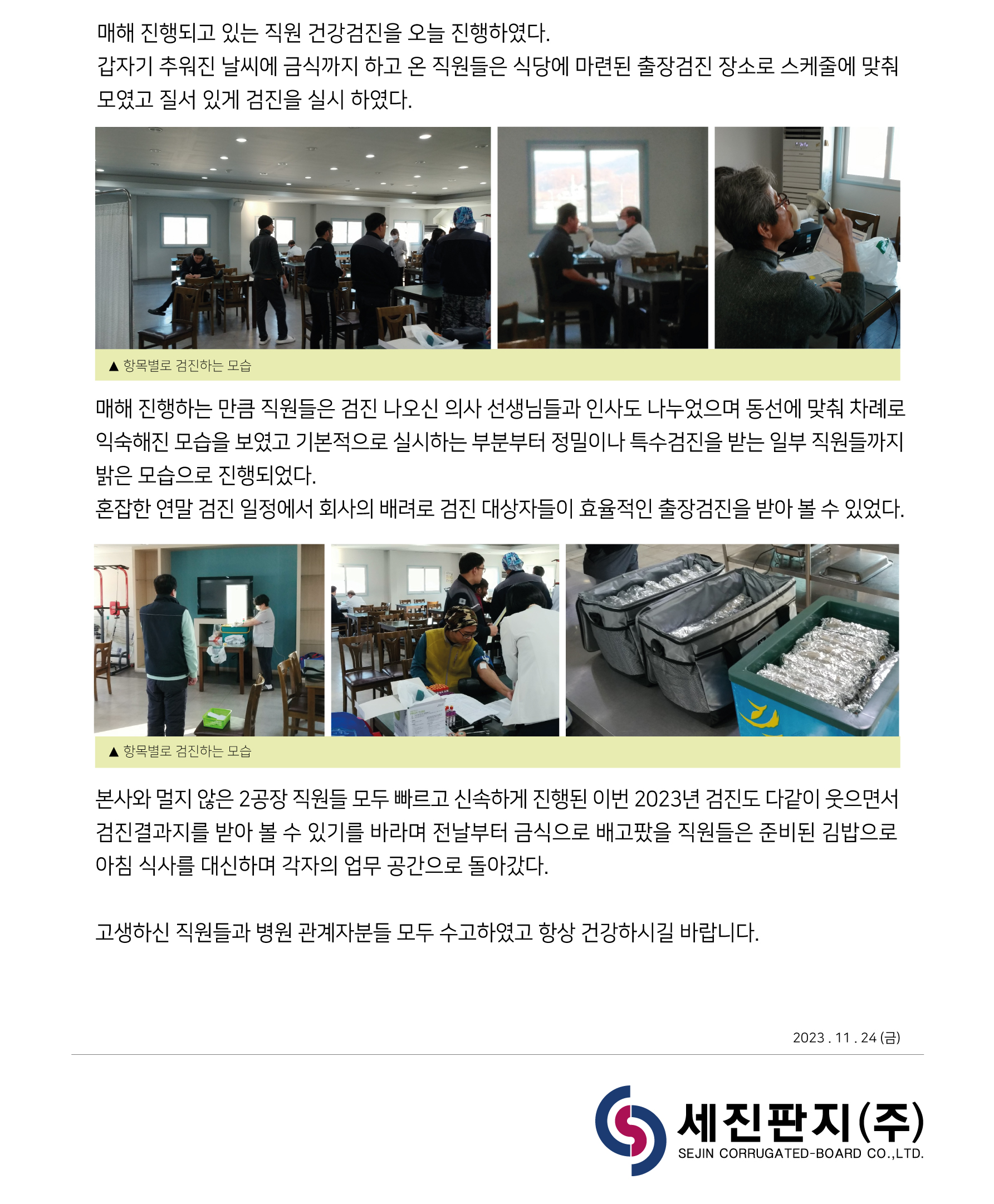 2023 세진판지(주) 건강검진 실시!